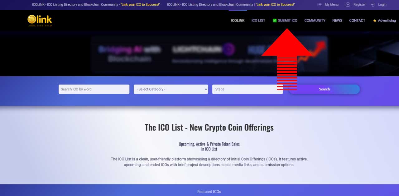 For the new ICO Submission you don’t need to be a Member of ICOLINK.COM Community. But if you will decide to edit ICO page better to create a community account. Only ICO creator has rights to use the ICO editor. Click the menu button "SUBMIT ICO" and Fill the Submission Form.