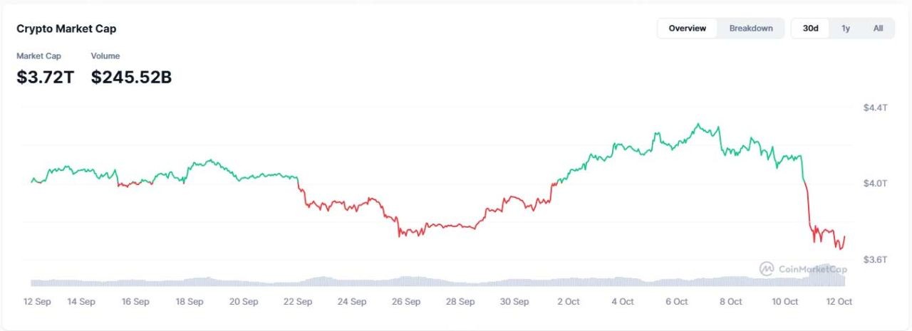 Bitcoin and Ethereum Take the Biggest BlowsBitcoin (BTC) didn't escape unscathed. The BTC/USD rate tumbled from $122,000 to $102,000 before crawling back to $113,000. Ethereum (ETH) fared no better, sliding from $4,350 to $3,435 before modestly recovering to $3,800. Smaller altcoins? They were hammered, some shedding up to 70% in a single trading session. By the day's close, the overall crypto market was down about 30%, marking one of the fastest value wipeouts in digital asset history.